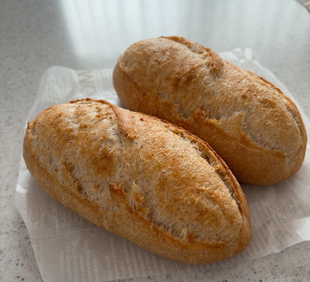 全粒粉の香りとバターの香りがたまらないパンです。一晩寝かせた生地で、クープにバターをのせて焼きます。