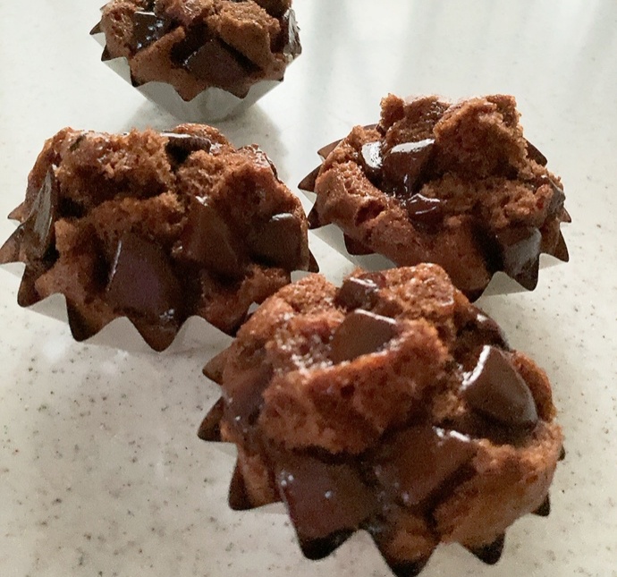 ゴロゴロのチョコがのった、手軽に作れる蒸しパンです。