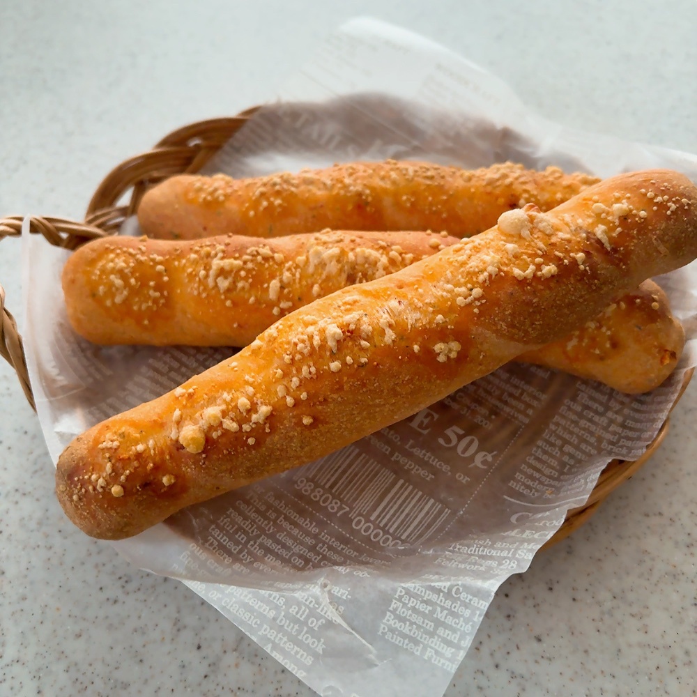 濃縮された味のドライトマト入りの生地の中にチーズを入れて、ねじって成形します。